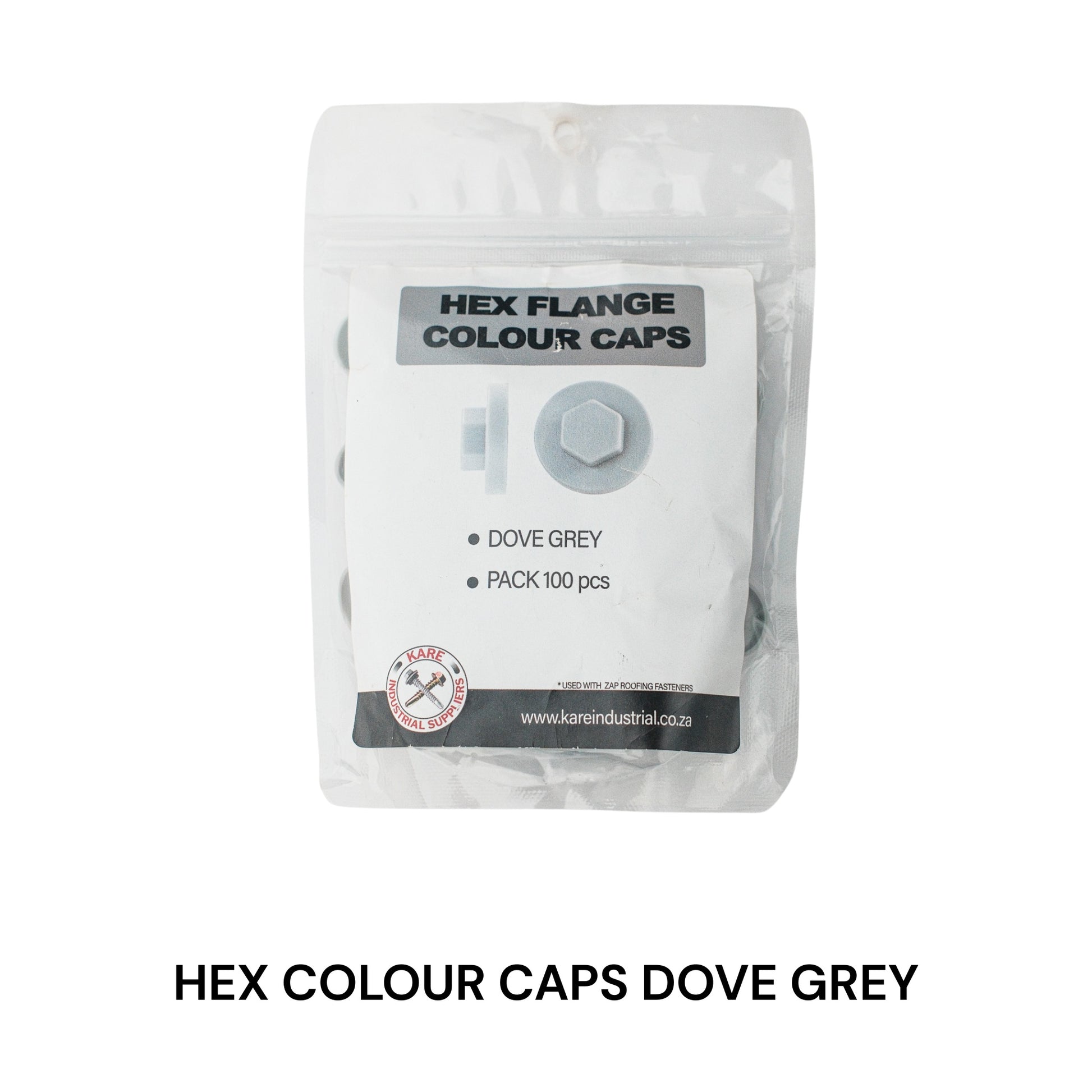 A custom Kare pouch of hex colour screw caps used to cover and protect roofing fasteners while providing a clean, finished appearance. Conveniently packed for quick access and tidy storage.