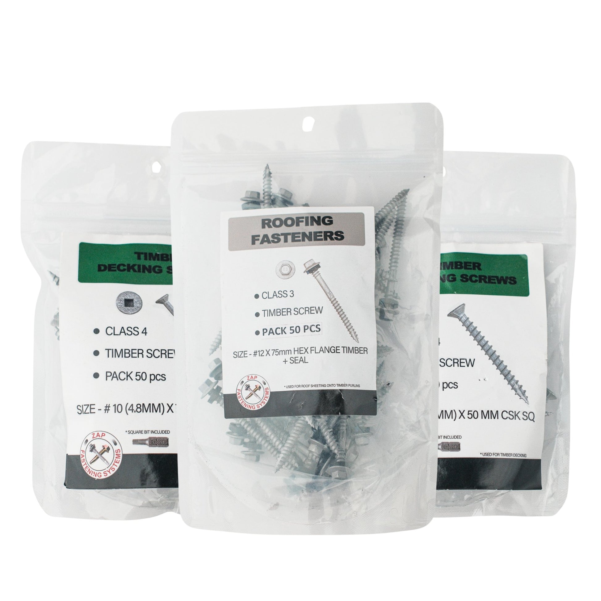 A custom Kare pouch containing a selected range of timber screws for general fixing applications. Packed for convenience, this grab and go pouch offers an easy way to keep commonly used screws organised and ready when needed.